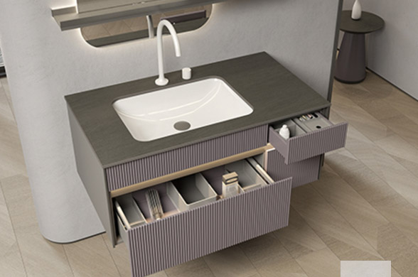 柜體材質:高級灰免漆板+朗生水磨石面板