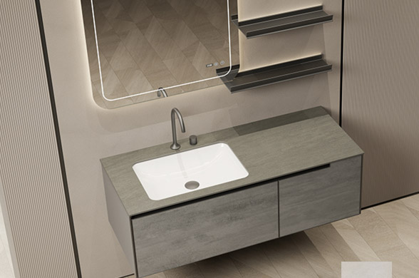 柜體材質:高級灰免漆板+朗生水磨石面板