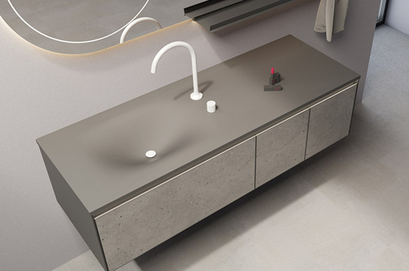 柜體:高級(jí)灰免漆板+朗生水磨石面板