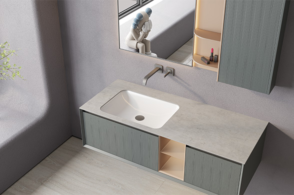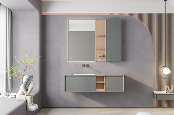 智能鏡:尺寸650*1000mm,博玥槍灰色包邊 智能鏡背光+防霧+右邊邊柜